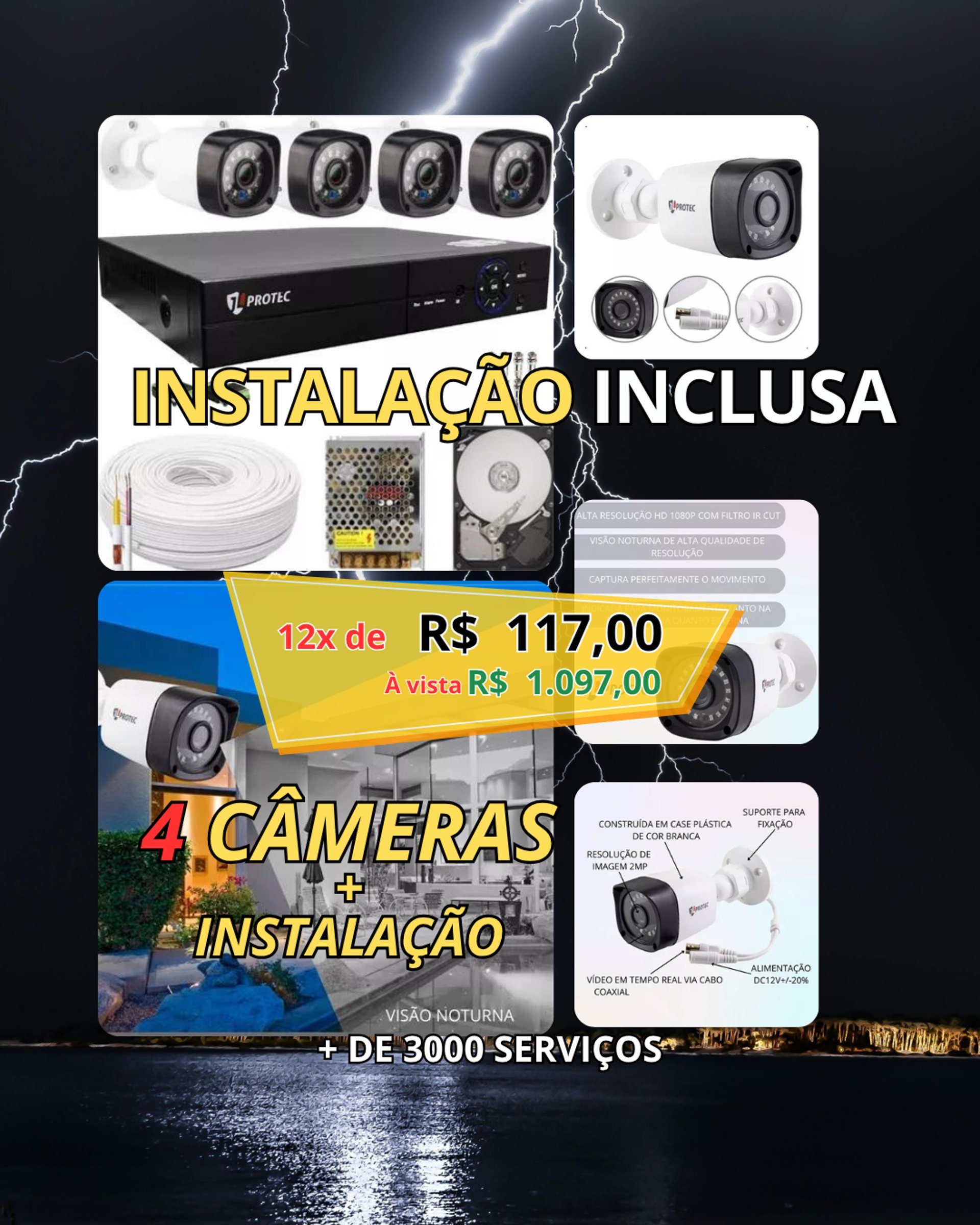 KIT COMPLETO COM 4 CÂMERAS INSTALAÇÃO INCLUSA