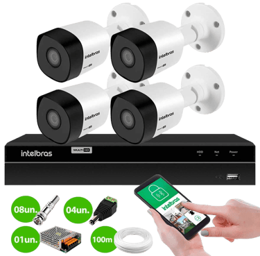KIT COM 4 CÂMERAS INTELBRAS INSTALAÇÃO INCLUSA